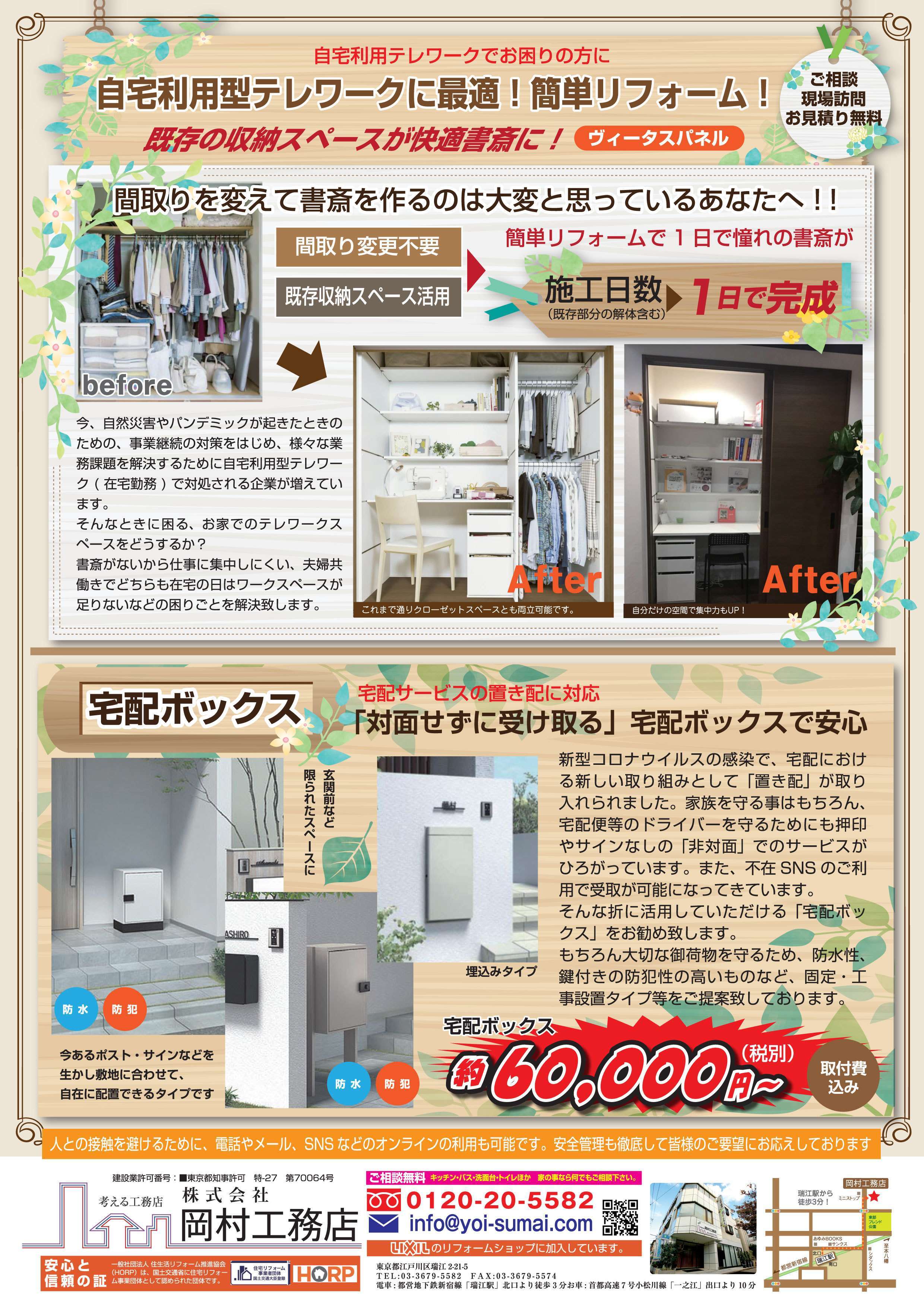 自宅テレワークに最適、簡単リフォーム!「対面せずに受け取る」宅配ボックスで安心リフォーム!