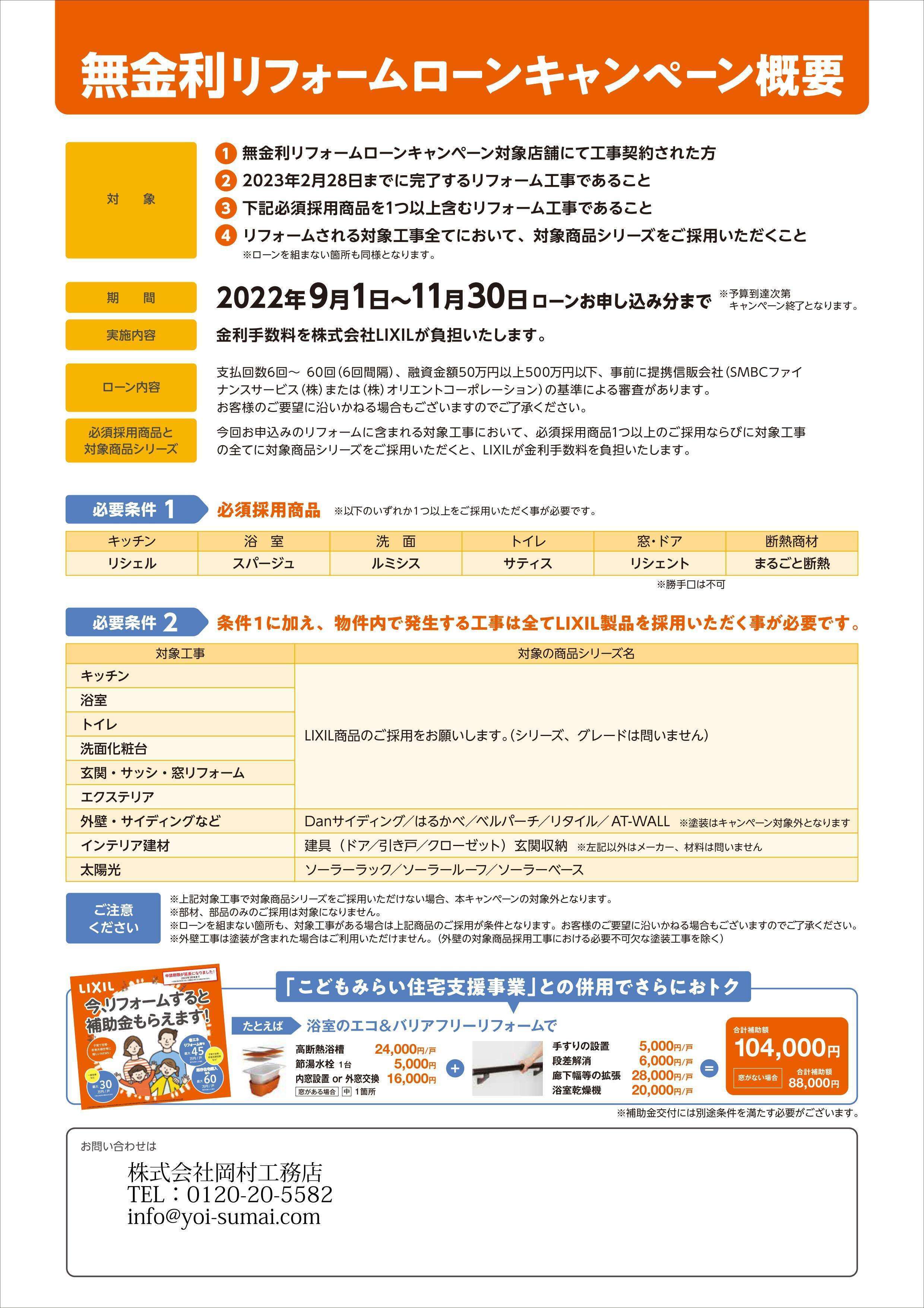 LIXIL商品で、無金利リフォームローンキャンペーンのお知らせ