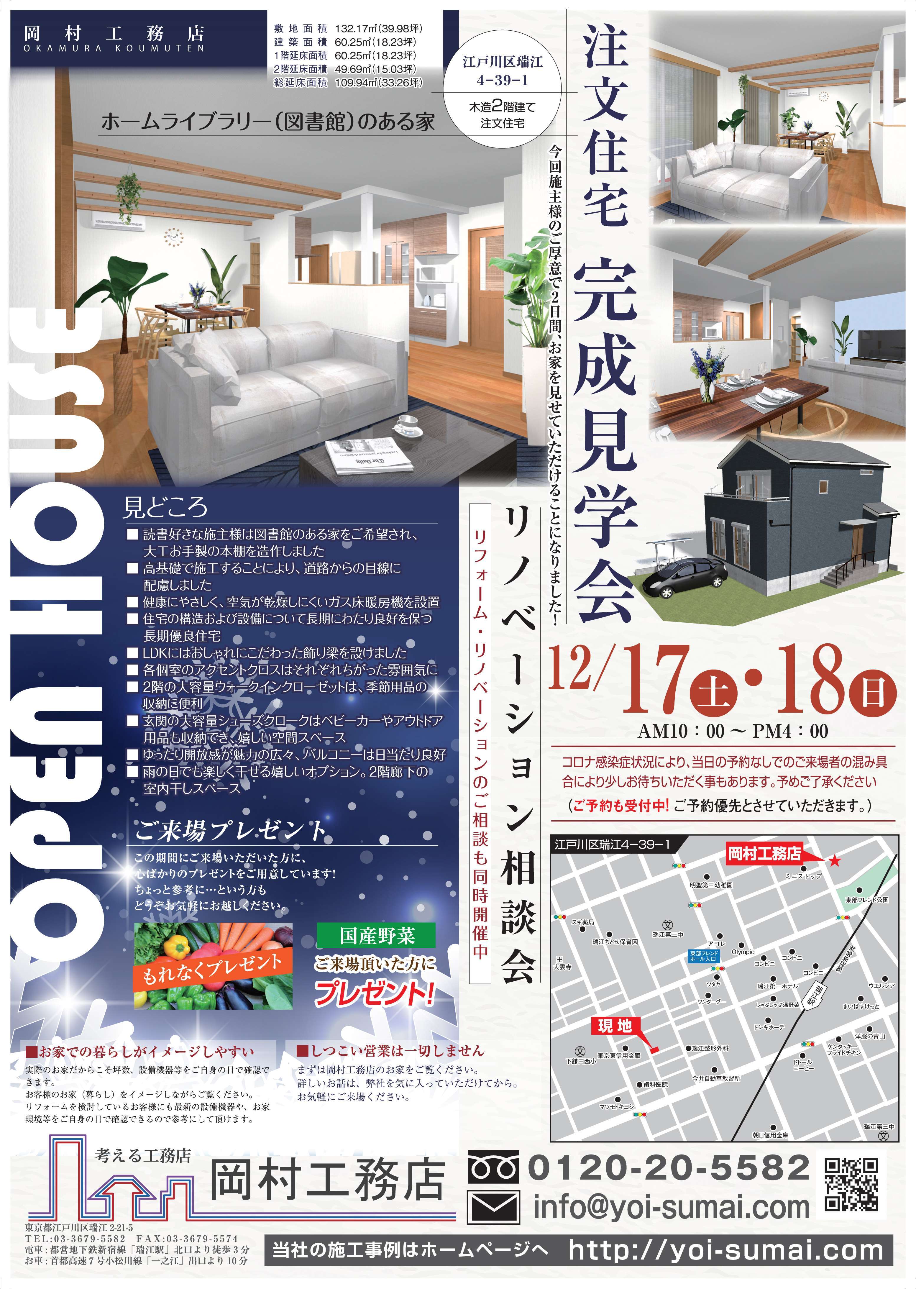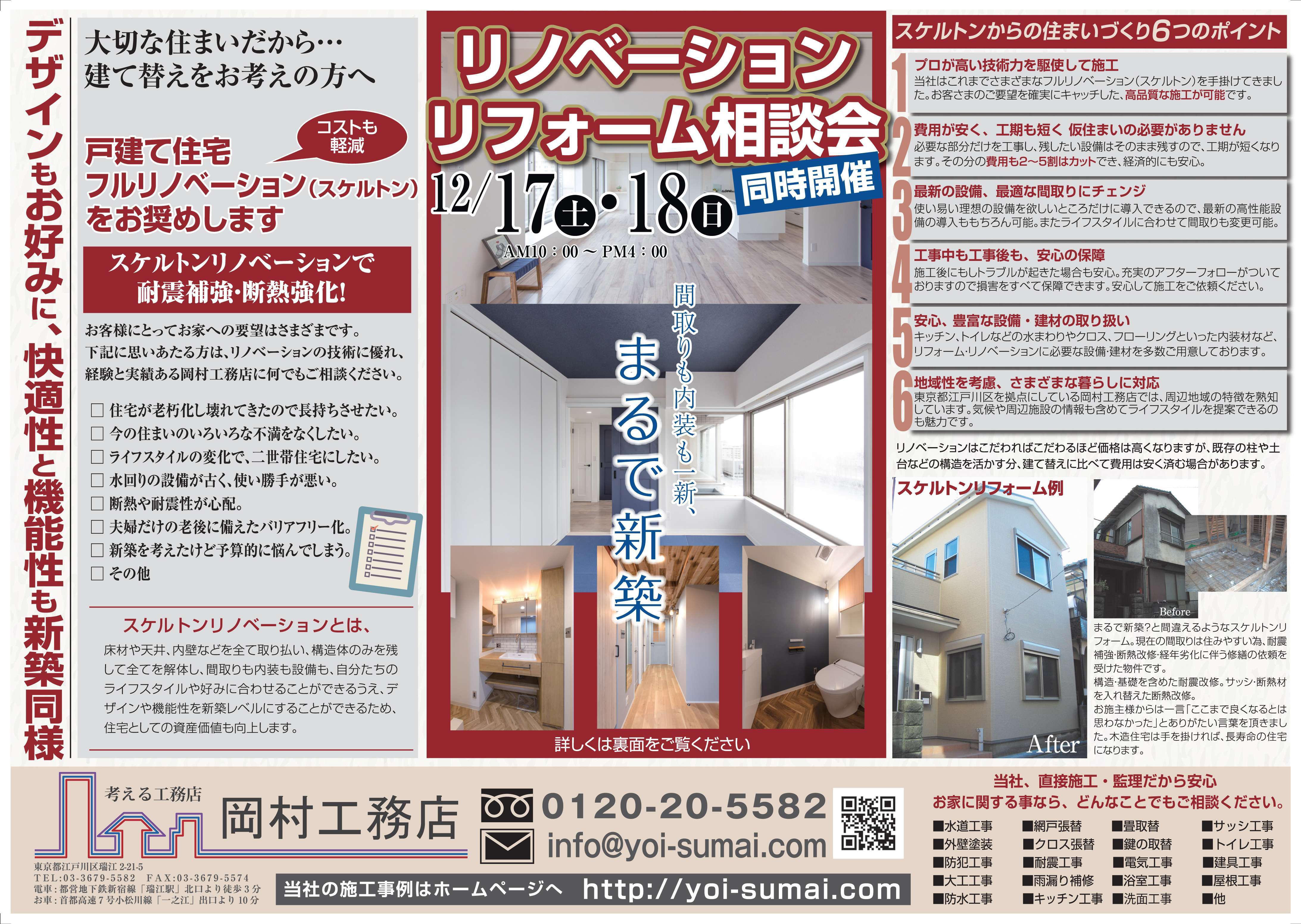 新築同様に、間取りも内装も一新、耐震強化・断熱強化も可能なリノベーション工事にご興味のある方は、お気軽にご来場ください。