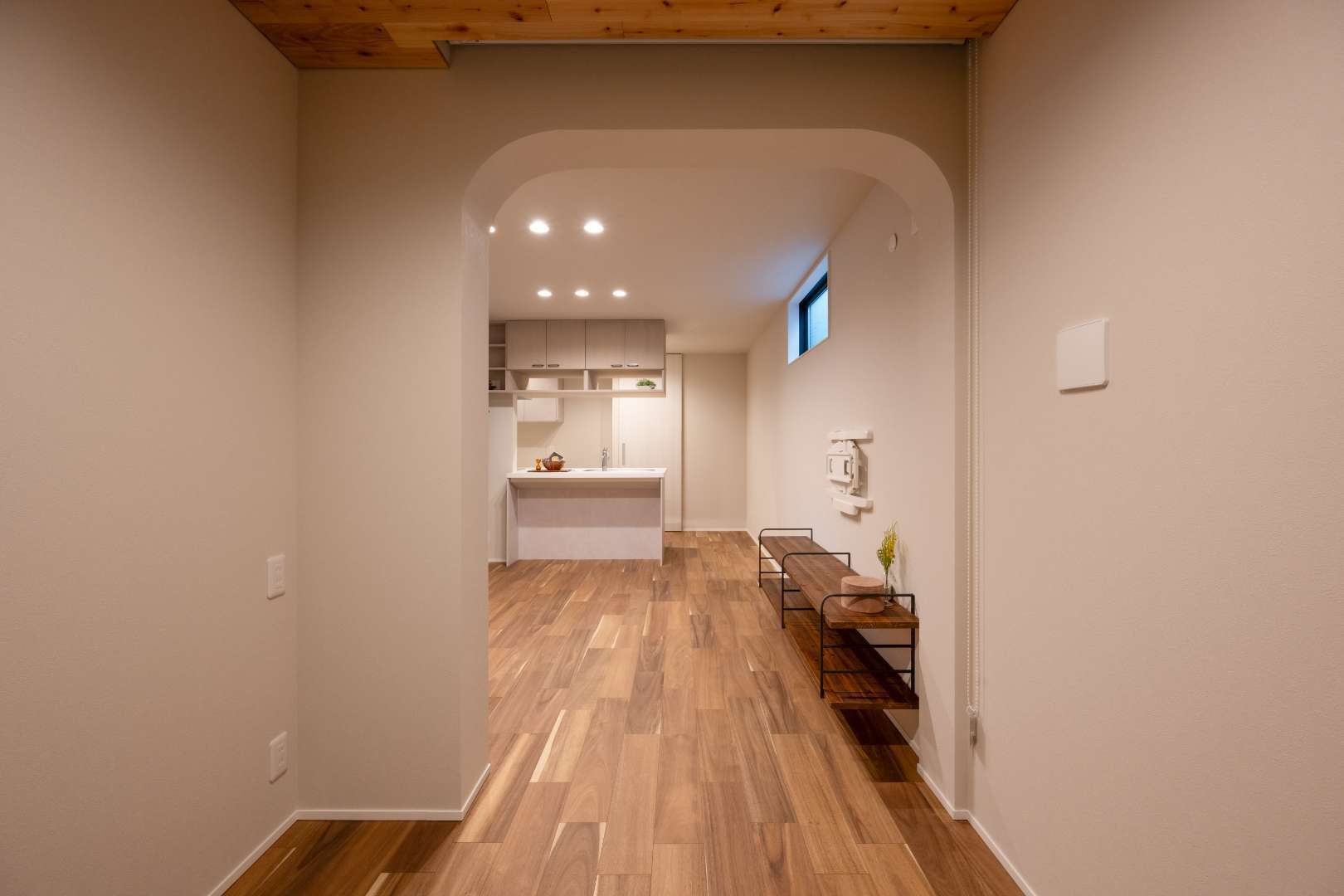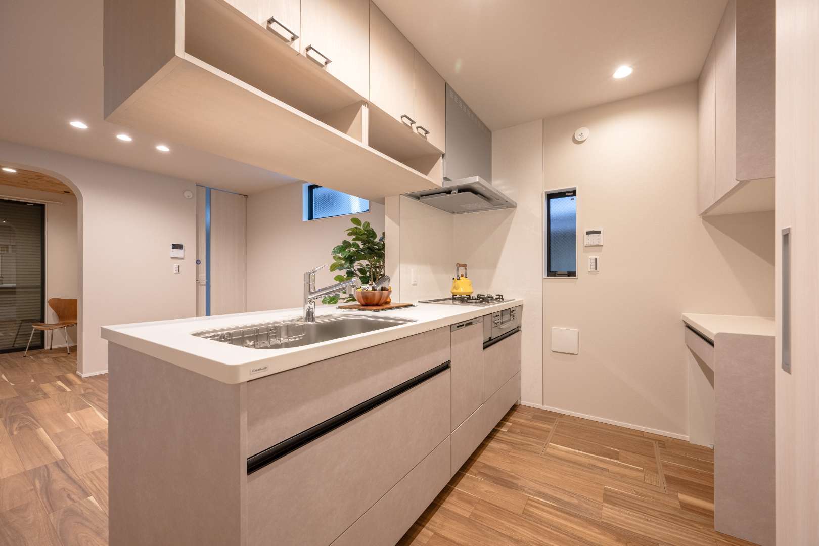 戸建て 新築 R壁が織りなす、やさしい光と空間が調和する家 R壁の柔らかな曲線が空間に温かみを与え、木材の床がリラックス感を演出します。自然光がたっぷり入る明るい室内は、優しい色合いでシンプルにまとめられ、家族みんながくつろげる空間に仕上がっています。キッチンやトイレ、洗面所は使いやすさをとデザイン性を兼ね備え、豊富な収納スペースが家族の日常をサポート。リビングには大きな収納棚を設け、お子様の『おもちゃ』や『生活用品ををスッキリ収納できます。どの空間も開放感があり、家族全員が居心地よく過ごせる空間になっています。 場所 東京都江戸川区 施工内容 木造2階建て+小屋裏収納 新築工事 間取り 1階床面積:39.42㎡ 2階床面積:43.07㎡(延床面積:82.49㎡) 1 / 1 前の施工事例 戸建て 人も愛猫もストレスなく暮らす家 【江戸川区新築工事】